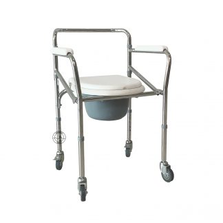 เก้าอี้นั่งถ่ายเหล็กชุบโครเมียม พับได้ มีล้อ